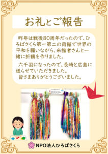 千羽鶴のお礼とご報告