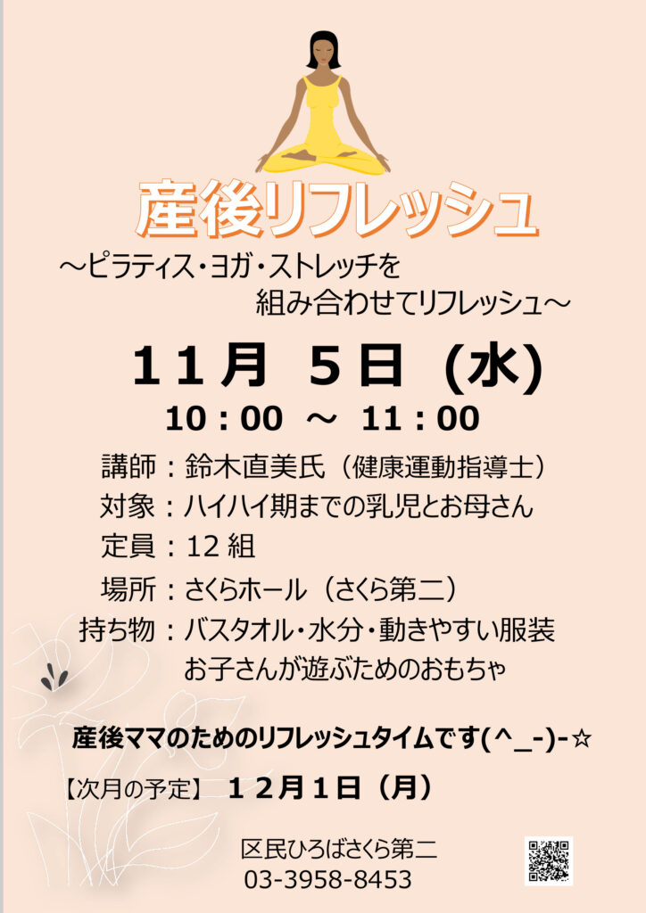 11月5日(水)産後リフレッシュ