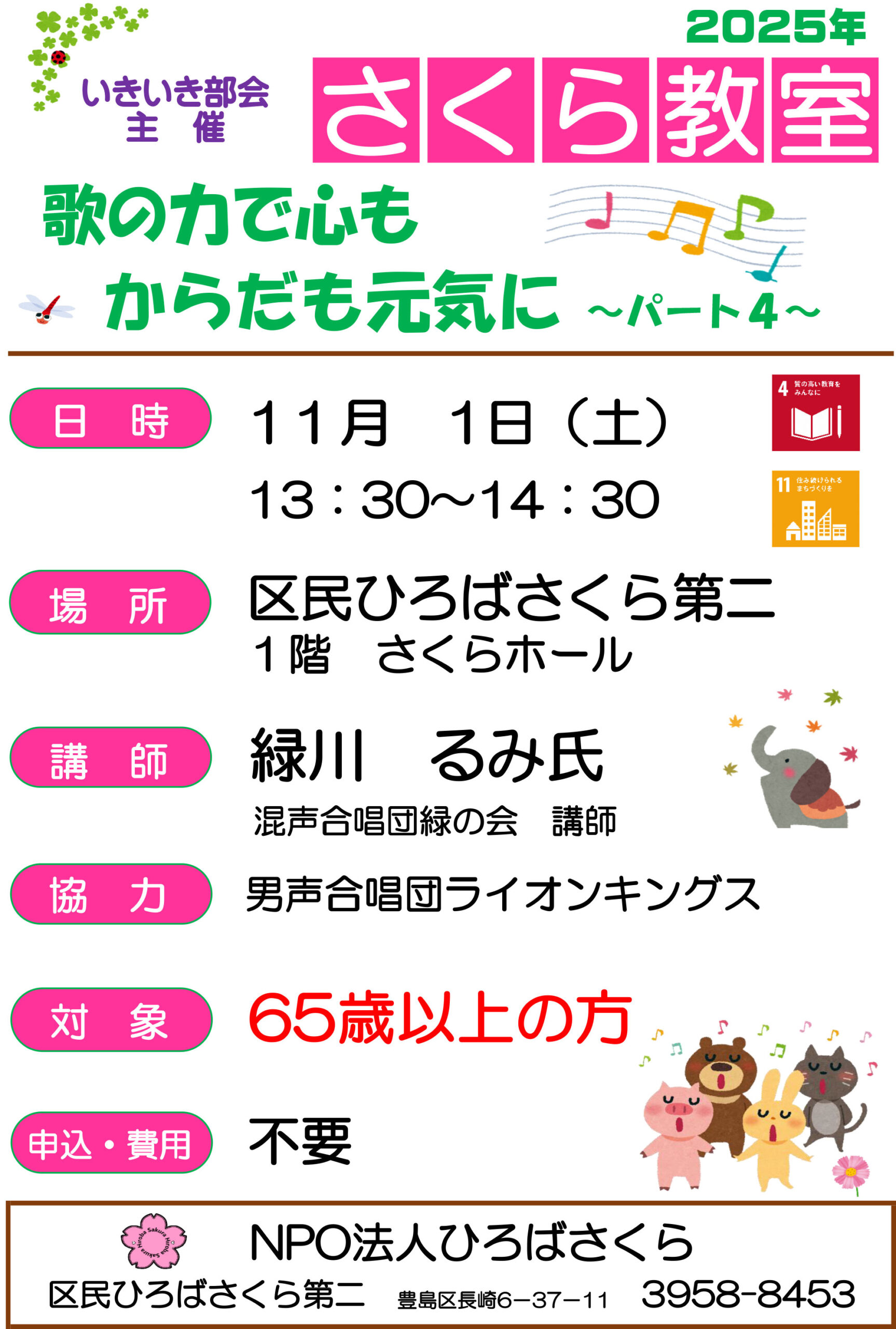 11月1日(土)さくら教室 歌の力で心もからだも元気に~パート4~